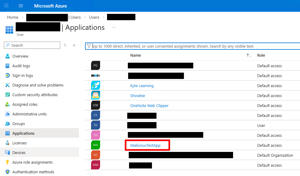 This view reflects Enterprise Applications the user has consented to, not developer-created App Registrations.