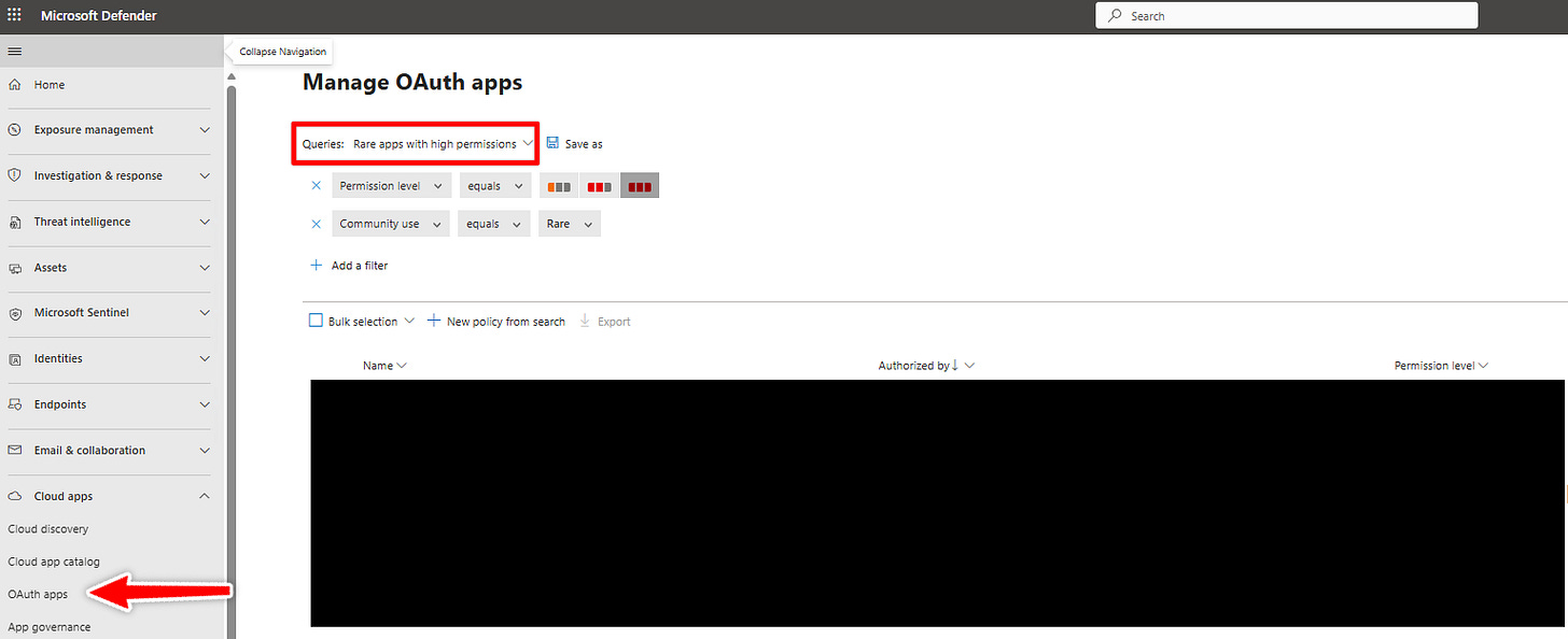 This helps you identify suspicious consent grants and cloud app behavior across the tenant. Pro-tip: filter for “Rare apps with high permissions”