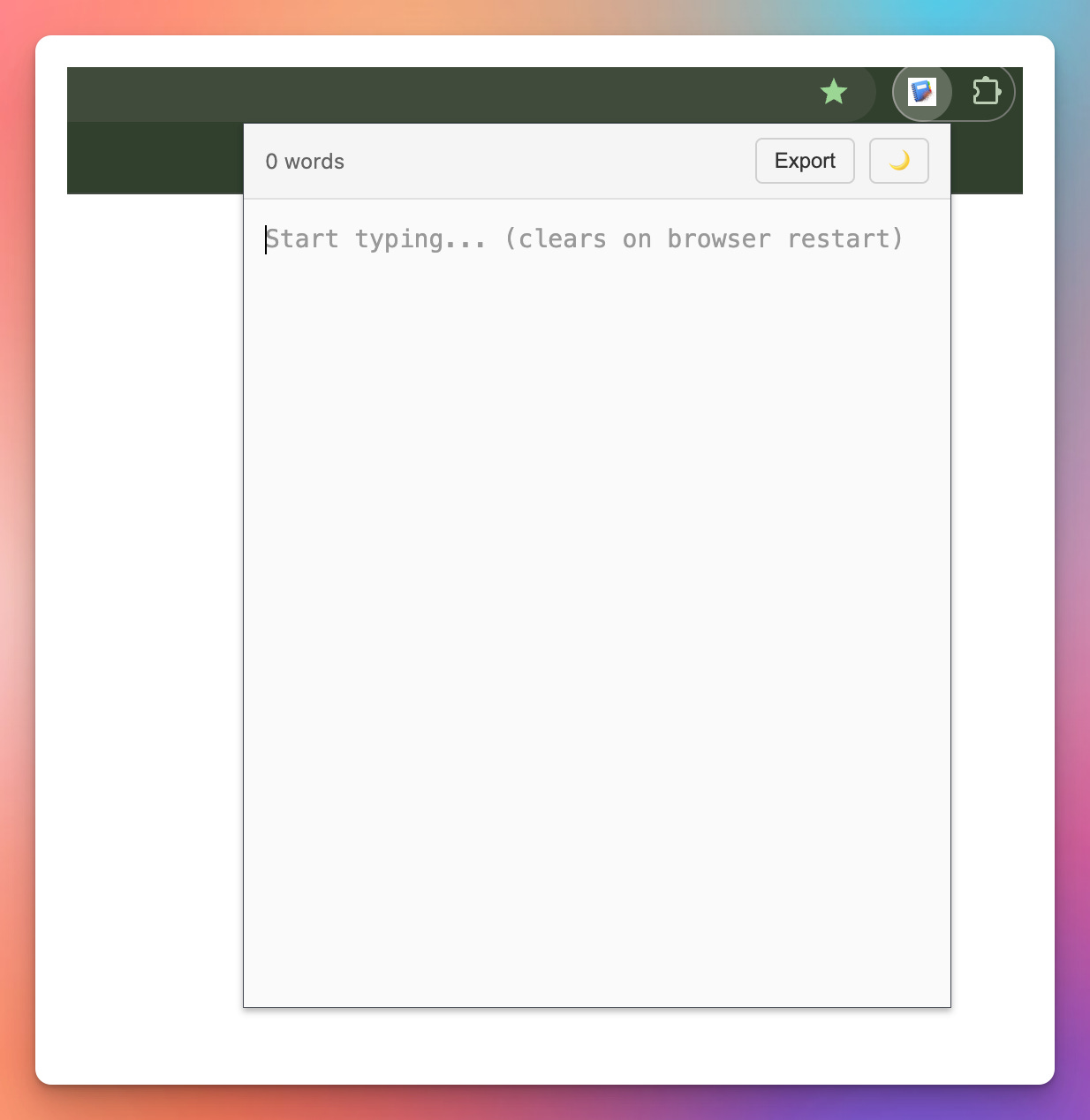 My solution? I put together my first Chrome extension, called TempPad, - that lives with your extensions. It’s basically a one-trick pony - you open the extension and you have a place you can save text within your browser session, and it persists until the browser closes. I also included a word count to make ad-hoc word counting easier. For the instances where I do end up wanting to save the contents of TempPad, there’s an export button that will save your TempPad as a .txt file. Throw in dark mode, and that’s the full feature set.