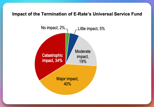 The data is blunt. Loss or disruption of E-Rate funding would be catastrophic or severely damaging for most districts, across all geographies. Overall, 74% of respondents said the loss of E-Rate would have a significant negative impact, with 40% describing the disruption as major and 34% as catastrophic. Connectivity is no longer a support service; it is the backbone of instruction, assessment, safety systems, and AI-enabled learning.